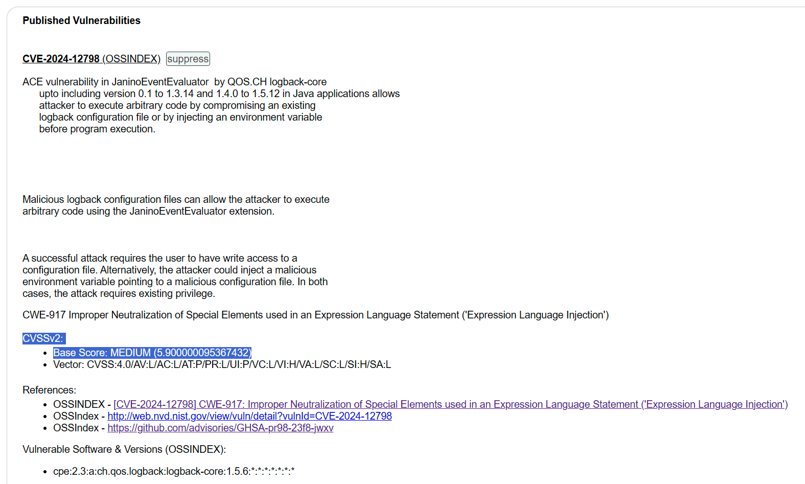 [ERROR] logback-core-1.5.6.jar: CVE-2024-12798(5.900000095367432)