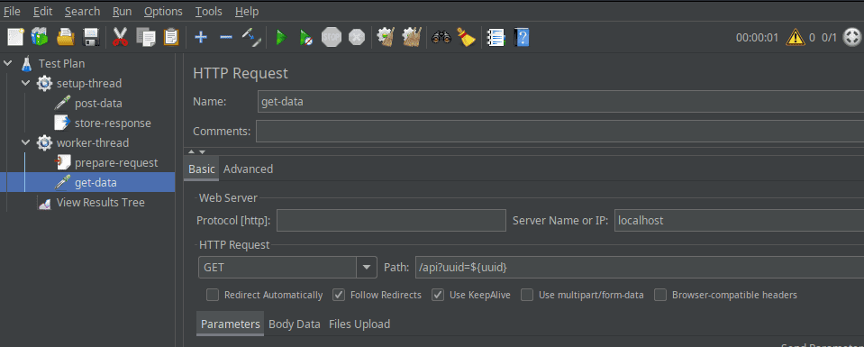 - 第二个线程组使用存储的UUID执行GET请求