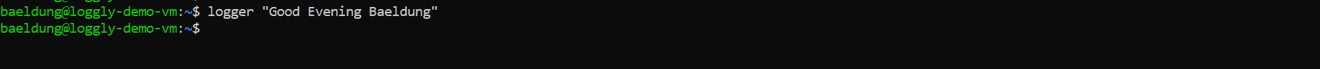 此外,我们可以通过运行 logger 实用程序向 Loggly 推送测试事件来验证设置: